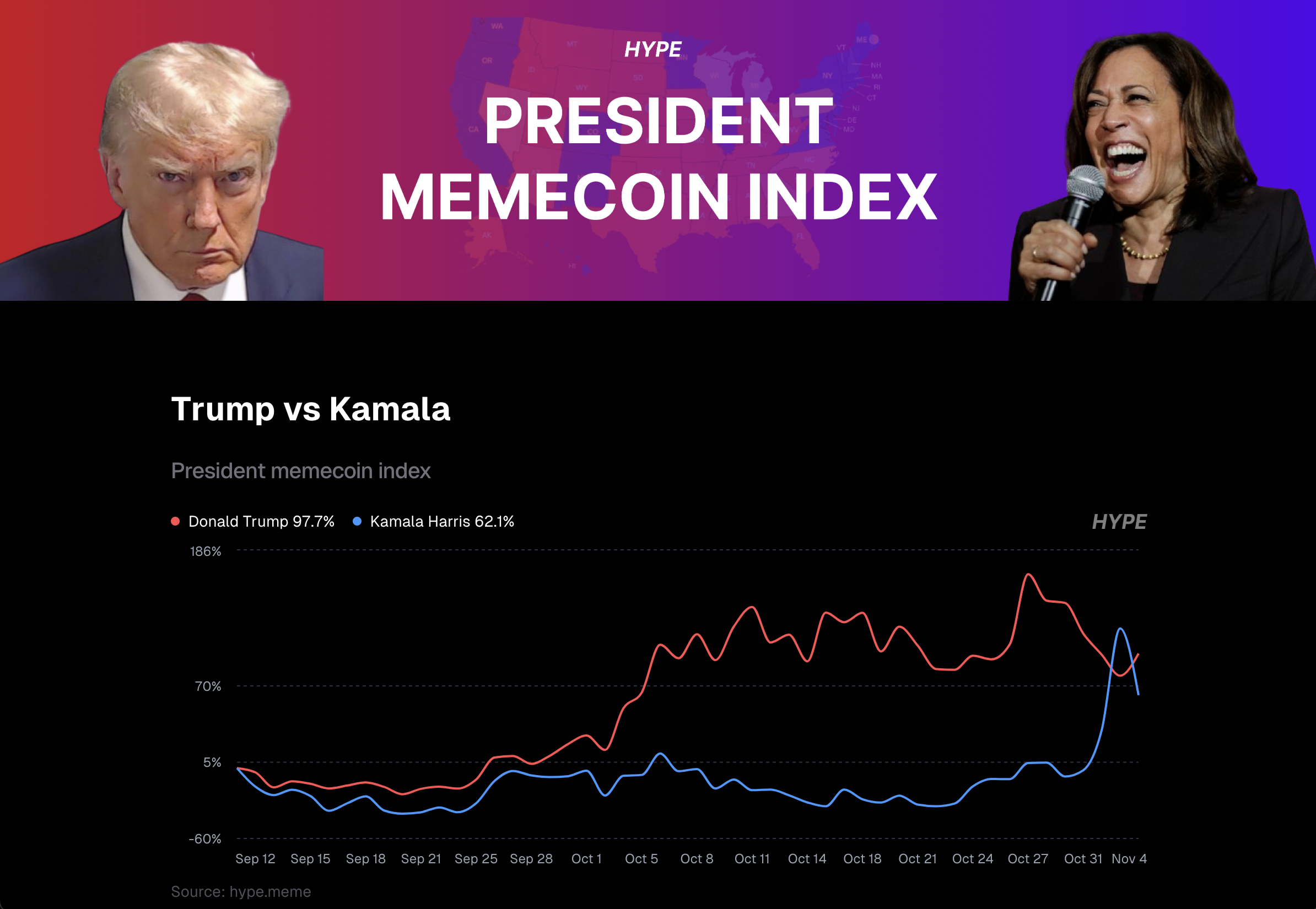 — Track how Trump and Kamala memecoin markets are performing relative to each other